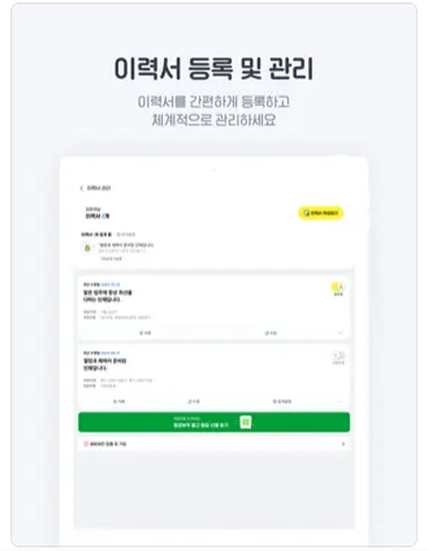 이력서 등록, 지원 현황 관리, 공고 스크랩 등 다양한 기능을 통해 구직자는 보다 효율적으로 구직 활동을 할 수 있습니다. 기업 회원은 채용 공고 등록, 지원자 이력서 열람 및 관리가 모바일에서도 가능합니다.