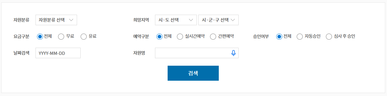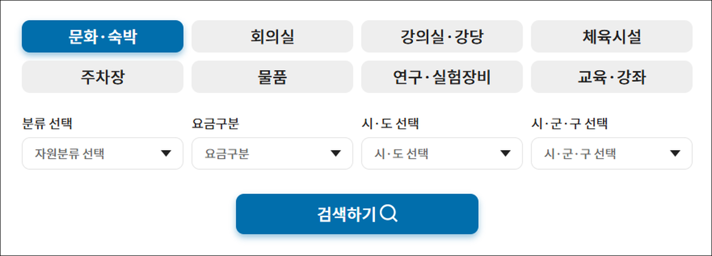 - 검색 및 자원 선택: 원하는 자원을 통합 검색 또는 지도 기반 검색을 통해 탐색