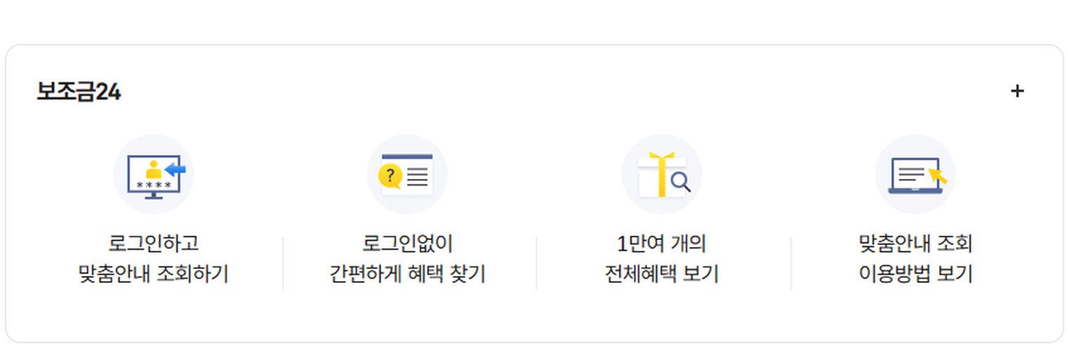 - 보조금24 서비스 연동: 맞춤형 보조금 및 지원금 정보 제공