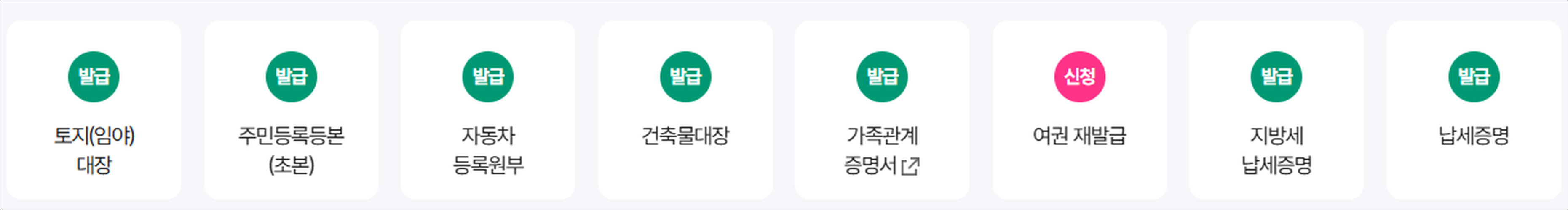 - 민원 증명서 발급: 주민등록등본, 가족관계증명서 등 각종 증명서 발급 및 열람