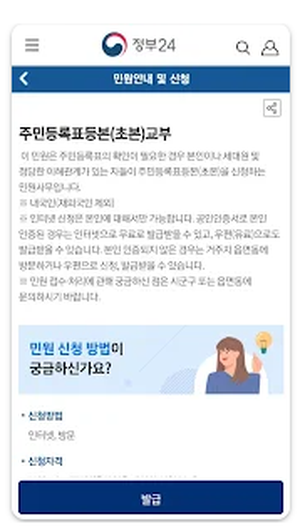 정부24의 서비스를 보다 손쉽게 이용하고자 한다면, 스마트폰 앱 설치를 추천합니다. 정부24 앱은 PC 웹사이트와 동일한 서비스를 모바일 환경에서 이용할 수 있도록 개발된 공식 앱입니다.
