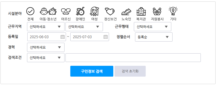 회원 가입 후 로그인하면 다양한 필터링 조건을 통해 구인 정보를 검색할 수 있습니다.